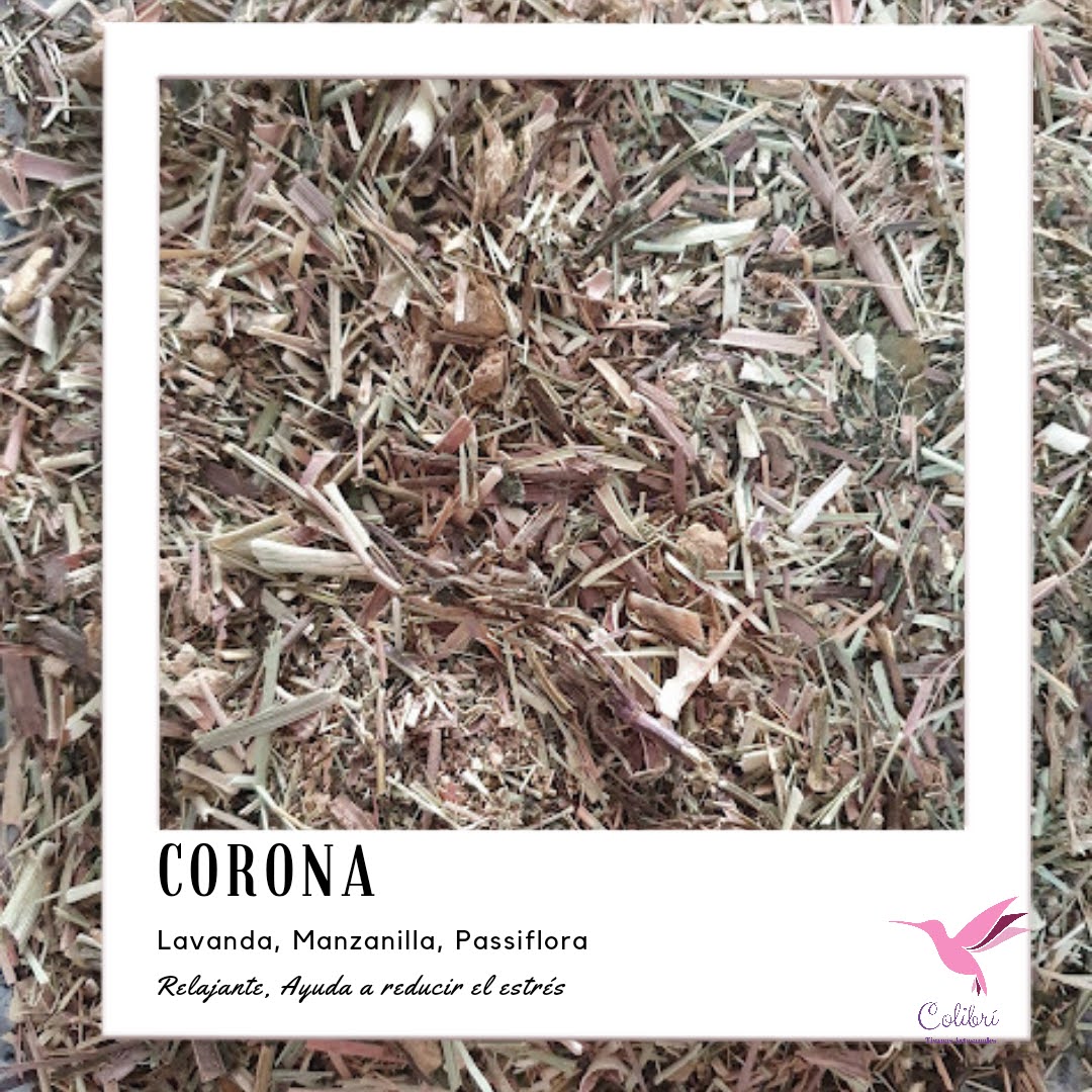 Corona es una relajante mezcla de Lavanda, Manzanilla y Passiflora. Deliciosa y natural se recomienda tomar esta mezcla por las tarde o antes de dormir, perfecta para acompañarte en esos días de mucho trabajo o de mucha carga emocional.