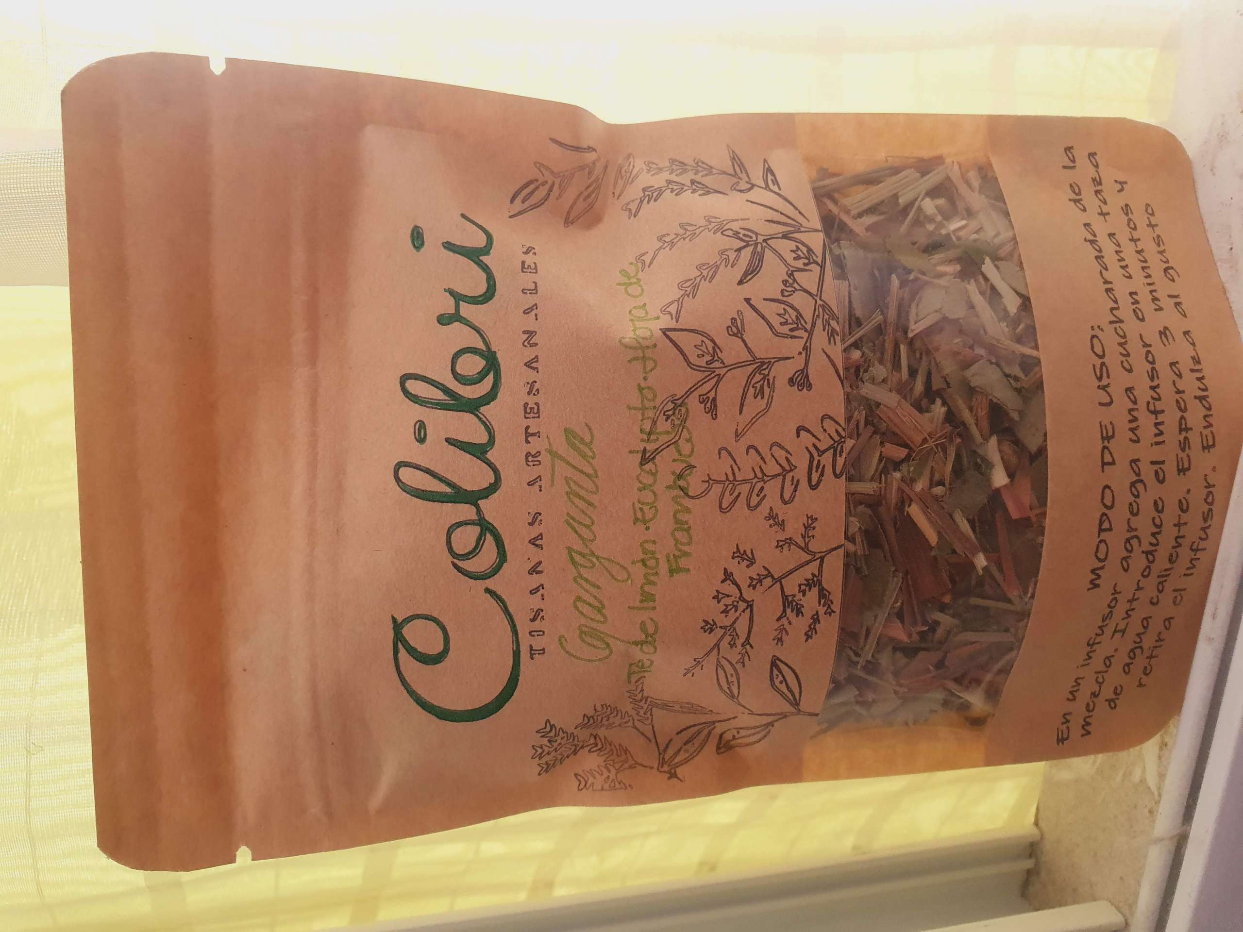 Garganta es una mezcla de Té de limón, eucalipto, y hojas de frambuesa. Es ideal para tomar por las mañanas, se recomienda tomar caliente.