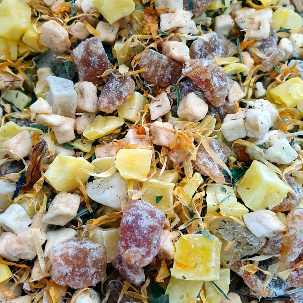 Modo de uso: Para tomar como infusión caliente a un infusor agregar una cucharada de la mezcla. Introducir el infusor en una taza de agua caliente. Esperas 5 minutos y endulzas al gusto.