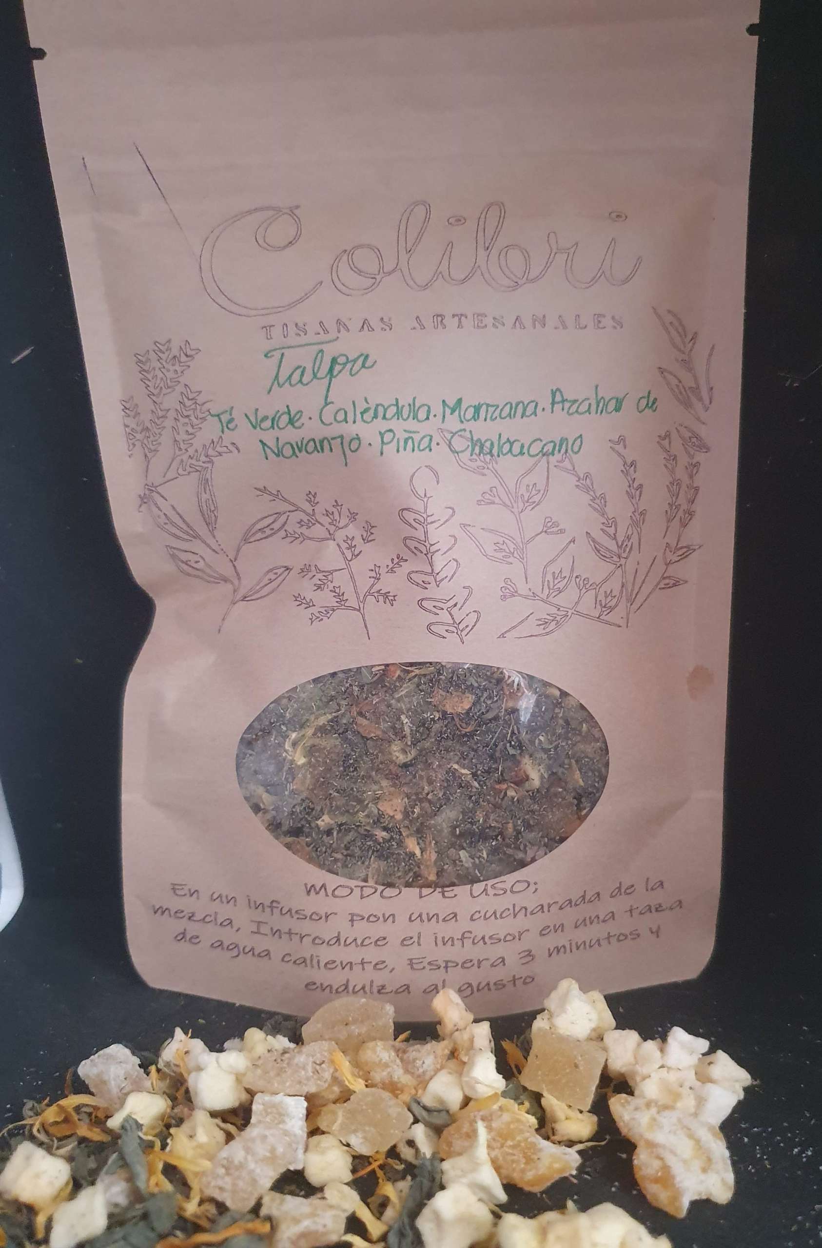 Nuestras tisanas son elaboradas de manera artesanal y con ingredientes 100% naturales. No utilzamos saborizantes, colorantes, endulzantes ni conservadores artificiales.